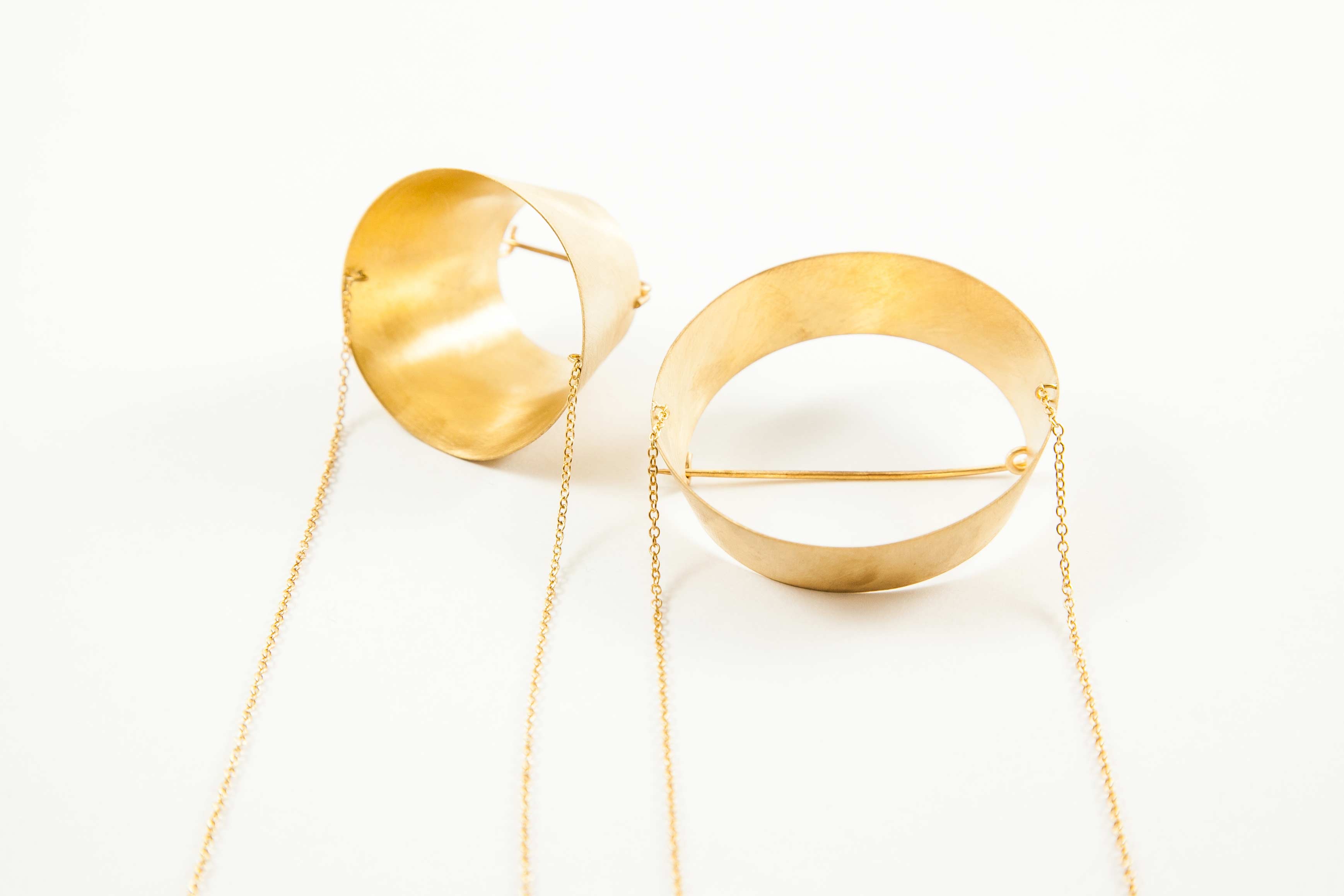 Le spille sono realizzate a forma di megafoni, nascenti da un unico pezzo tagliato in due parti, collegate da una lunga coppia di catene. La forma è stata scelta per evocare l’amplificazione del suono delle parole, a volerne sottolineare l’importanza. Le spille sono pensate per essere indossate una per ogni singolo interlocutore oppure entrambe dallo stesso soggetto.