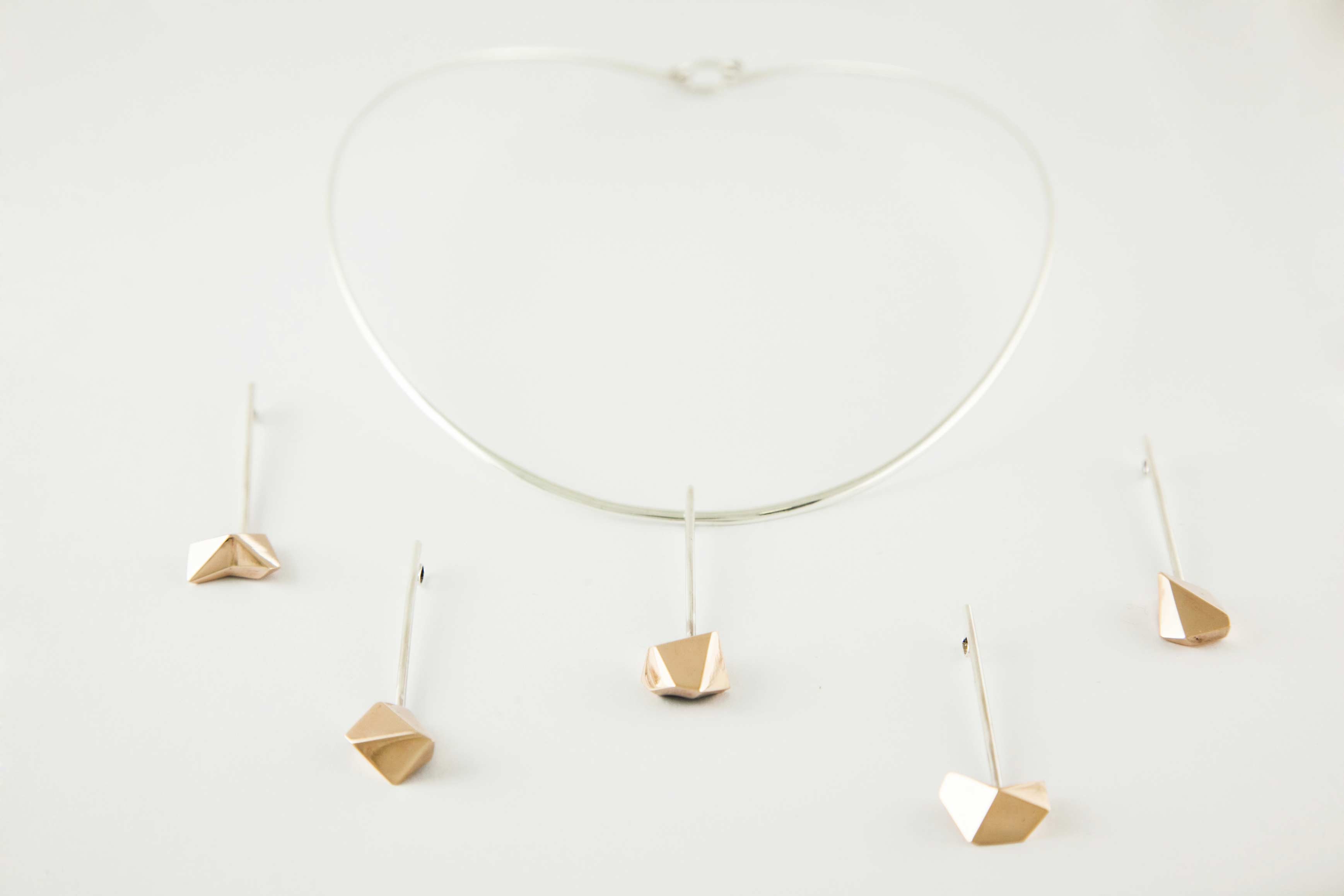 I volumi vengono estrapolati manualmente da blocchi di cera fondibile e successivamente fusi con l’antica tecnica della fusione a cera persa; il filo d’argento, che costituisce gli steli, è invece fuso e trafilato interamente da metallo. Questo connubio delle diverse tecniche orafe si conclude con l’attenta rifinitura di ogni singola superficie sfaccettata del gioiello per poter raggiungere la resa a specchio.